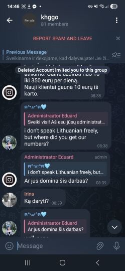 Finansiniai sukčiai šią schemą dažniausiai naudoja „Telegram“ programėlėje – per ją siunčia gyventojams kvietimus tariamai užsidirbti. Vienas iš scenarijų, kuriuo dalijasi į sukčių akiratį patekę asmenys – sukčius „Telegram“ pokalbyje apsimeta „Instagram“ atstovu ir kviečia gyventojus pamėgti tam tikras „Instagram“ paskyras už nedidelį atlygį. Šie pokalbiai dažniausiai – grupiniai, juose sukčiai siunčia informaciją didelei grupei žmonių, o kai kurie pokalbio dalyviai drąsina kitus įsitraukti pateikdami neva gautų uždarbio mokėjimų informaciją. Dažniausiai sukčiai siūlo sumokėti 3–9 eurus už vieną atliktą veiksmą. Panašūs metodai taikomi ir siūlant užsidirbti atliekant įvairius veiksmus „TikTok“ ar kituose socialiniuose tinkluose.