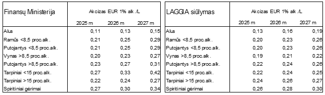 Šiuo metu siūlomas akcizų didinimo planas didžiausią augimą, o kartu ir ilgalaikių praradimų riziką, numato stipraus alkoholio grupei, kur skirtumas su kaimyninėmis valstybėmis ir taip yra didžiausias. Tuo tarpu mažiausiai rizikinga grupė, bet antra pagal surenkamo akcizo sumą, dar tris metus bus neišnaudojama akcizo surinkimui.