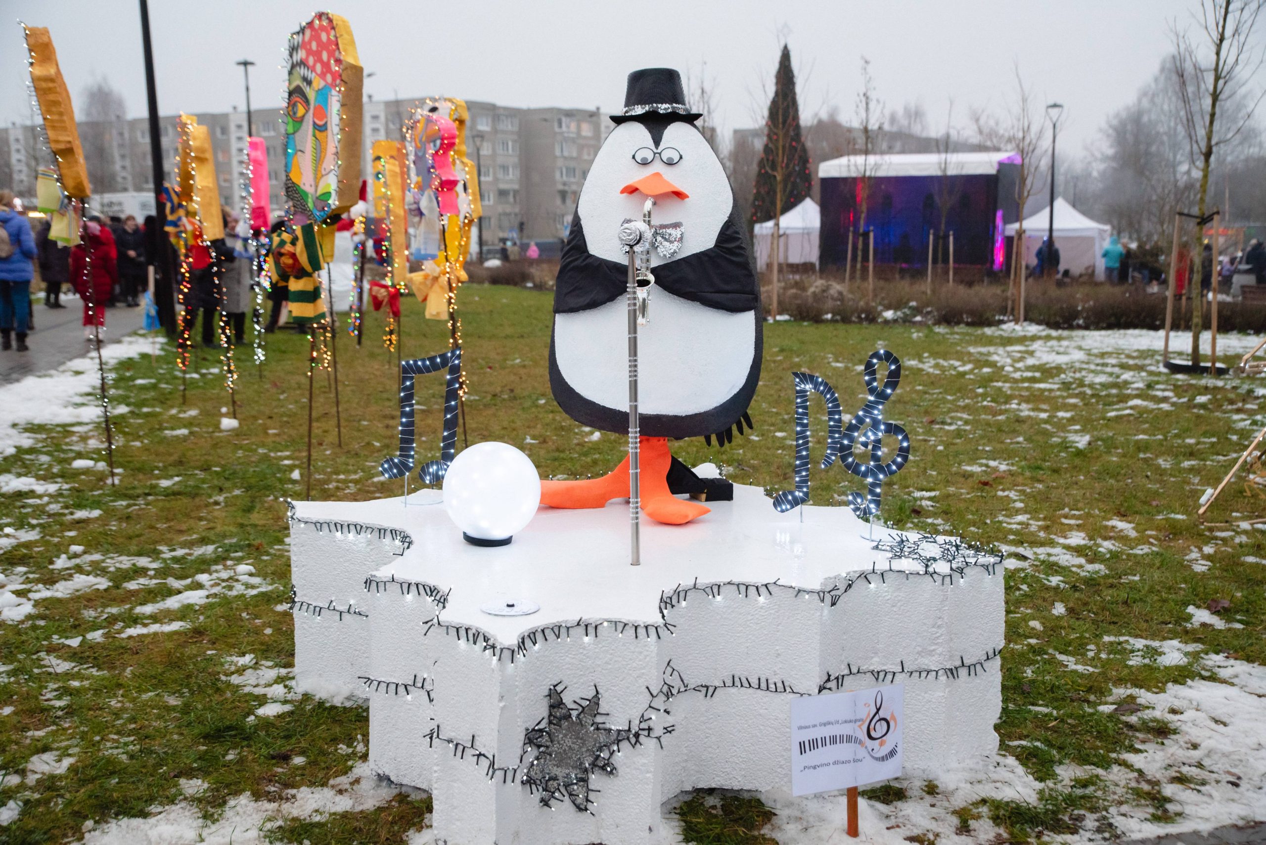 Pagrindinis šventės akcentas – pirmą kartą įžiebta interaktyvi miesto eglė, kurioje slypi tikra staigmena. Visą šventinį laikotarpį eglutė subtiliai skleis lengvą džiazą, pasklindantį po aikštę ir kuriantį jaukią Kalėdų aurą. Čia pat – bendruomenės rankomis sukurtas džiazuojančių Kalėdinių instaliacijų parkas.