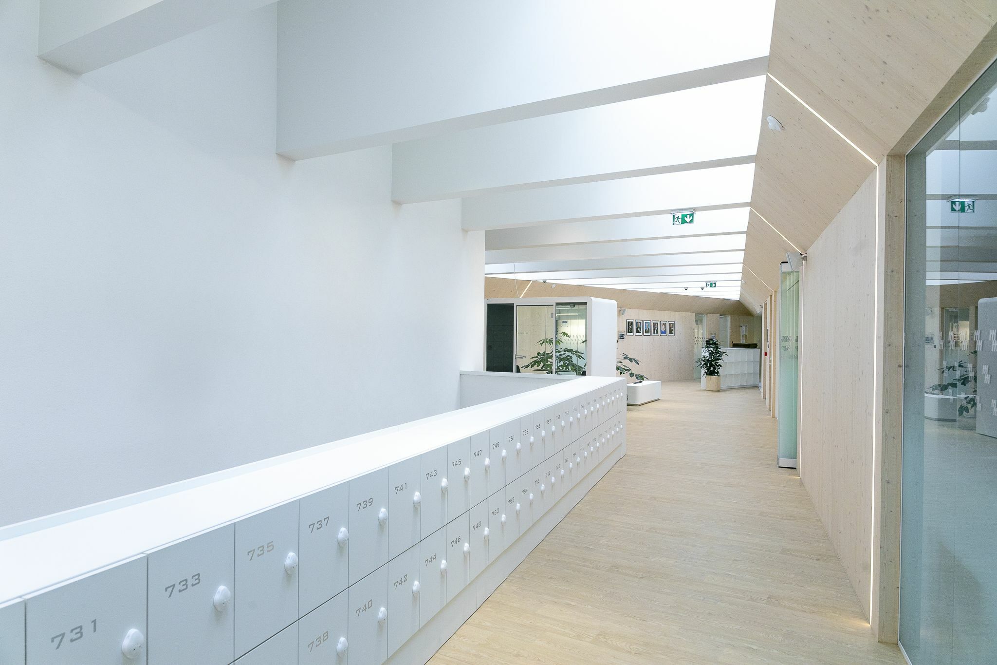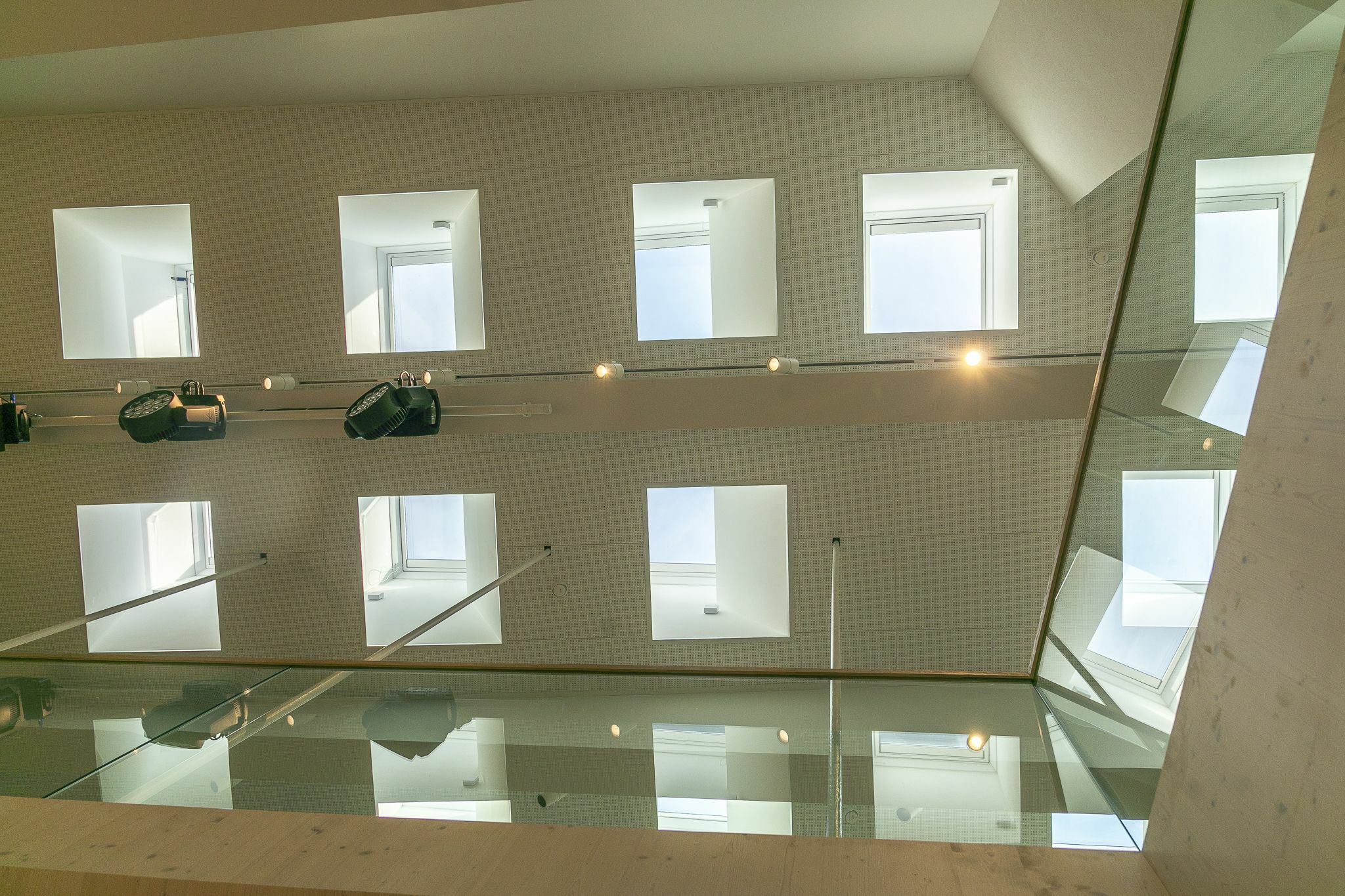 Didelė salė komplekso širdyje jungia du viršutinius aukštus, o natūrali šviesa, sklindanti pro stoglangius, suteikia šiai centrinei erdvei maloniai šviesios išvaizdos. Tačiau prireikus ją galima užtamsinti, tad patogu, kai erdvė naudojama skirtingoms reikmėms.