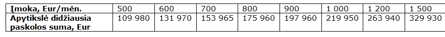 Štai, apytikslės paskolos sumos pagal mėnesinę įmoką: