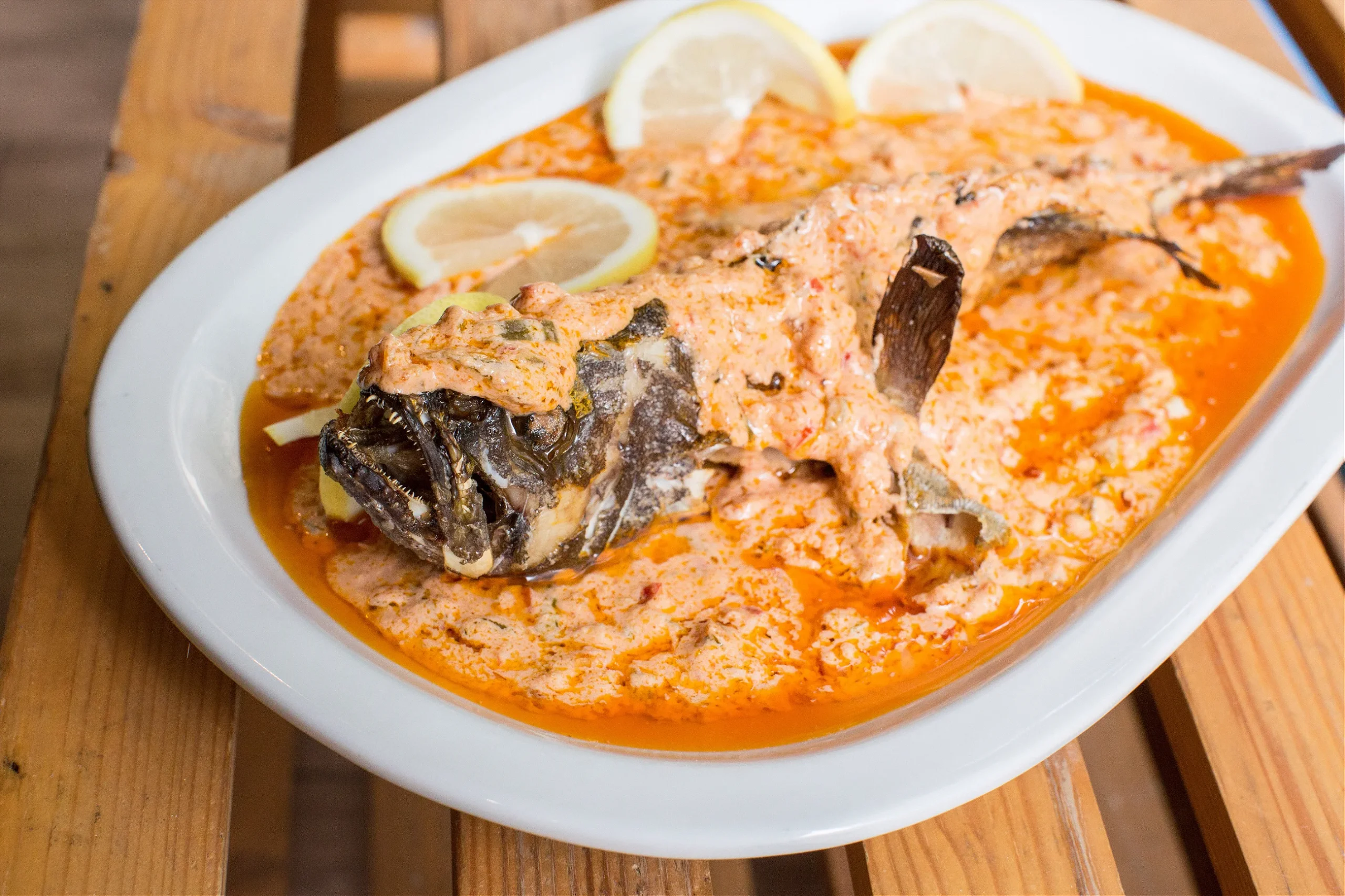 Norėdamas pats paragauti samke harra, vykstu į Le Pecheur (Žvejas) Ain Mreisse, rajone, besidriekiančiame palei Beiruto pakrantę, kur yra eilė žuvies restoranų. Le Pecheur, atidarytas prieš pat amžiaus sandūrą, pilnas senojo Beiruto nuotraukų, pagerbiantis miesto žvejus. Mano draugas ir aš gauname visą žuvį, su galva – daugiau nei pakankamai, kad pasisotintume dviese. Nuvalytas ir išvalytas otas puošiamas žaliaisiais pipirais, čili pipirais, svogūnais, kalendra, petražolėmis, pomidorais, graikiniais riešutais, citrinos griežinėliais, granatų melasa ir tahini padažu.