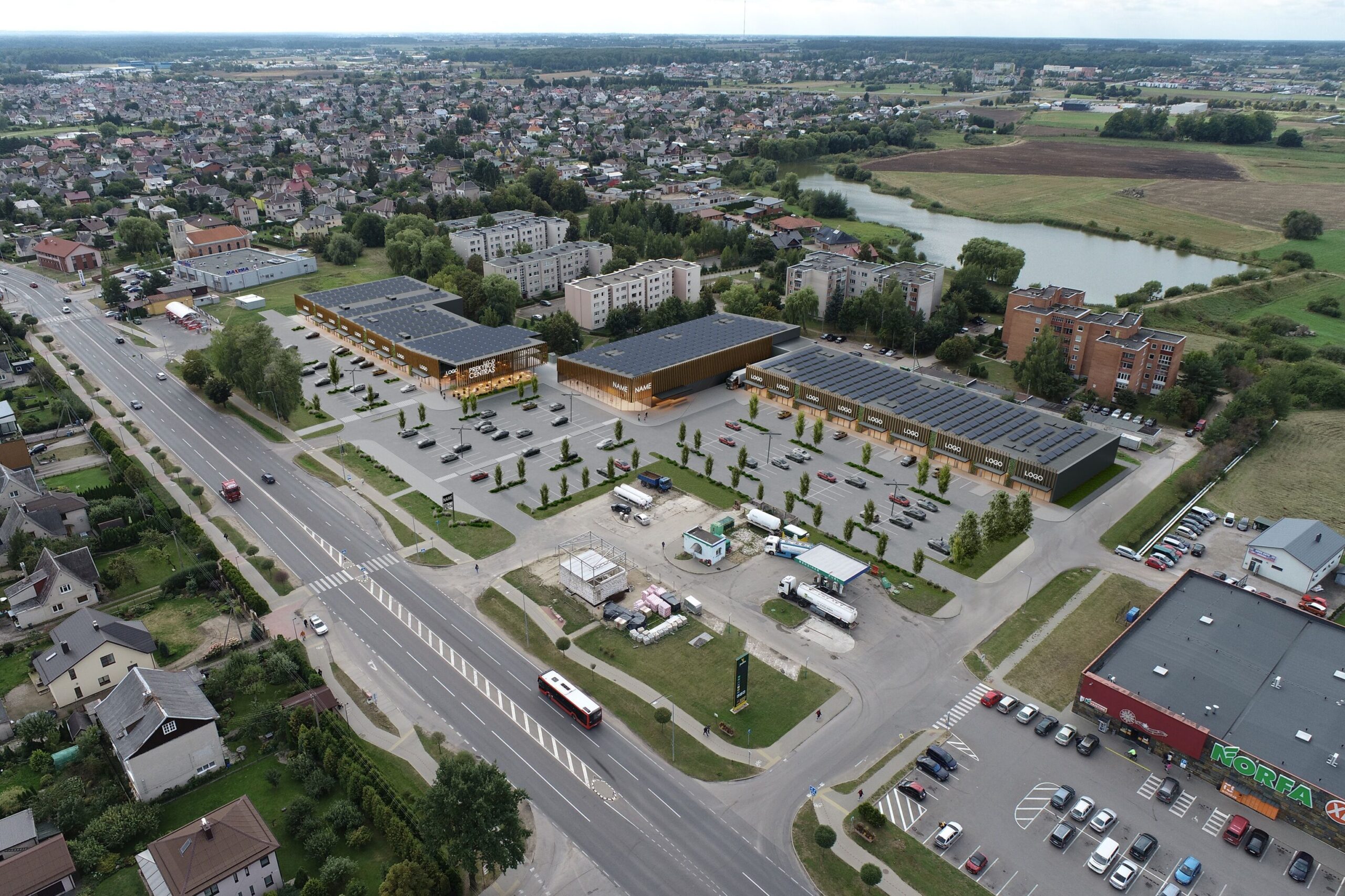 Įmonės „SIMPER“ statomą prekybos parką sudarys trys pastatai, jų bendras plotas sieks 8,7 tūkst. kv. metrų. Viename iš jų įsikurs 2,1 tūkst. kv. m ploto maisto prekių parduotuvė, kituose dviejuose – sporto klubas, restoranai, parduotuvės, prekiaujančios namų apyvokos prekėmis, ir vaistinė. Jau rasta 60 proc. nuomininkų, dėl kitų patalpų vyksta derybos. Maisto prekių parduotuvę planuojama atidaryti kitų metų antrąjį ketvirtį, o kitus du pastatus – iki trečiojo ketvirčio pabaigos.