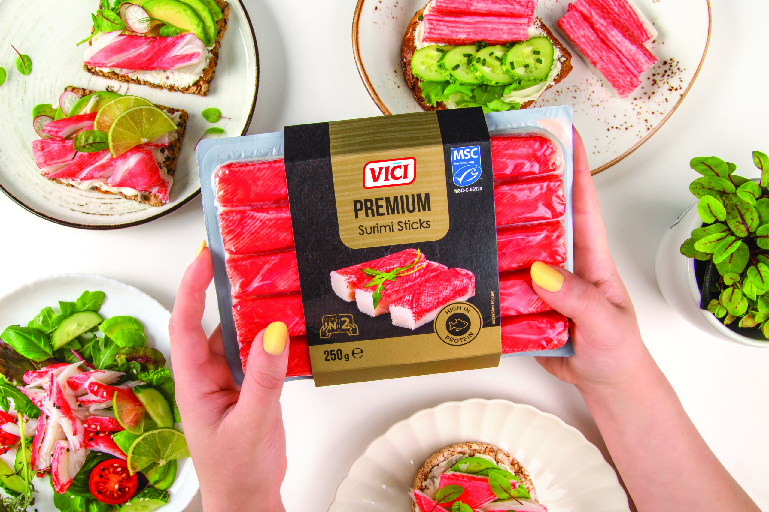 Ypač stiprios pozicijos pastebimos surimio kategorijoje: beveik pusė visos pagaminamos surimio produkcijos (apie 23,6 mln. kg per metus) jau yra sertifikuota. Tai apima ne tik „Premium“ linijos produktus, bet ir populiarius kasdienius pasirinkimus, tokius kaip mini surimio lazdelės su padažiukais ar pirkėjų taip pamėgtos snieginių krabų surimio lazdelės.