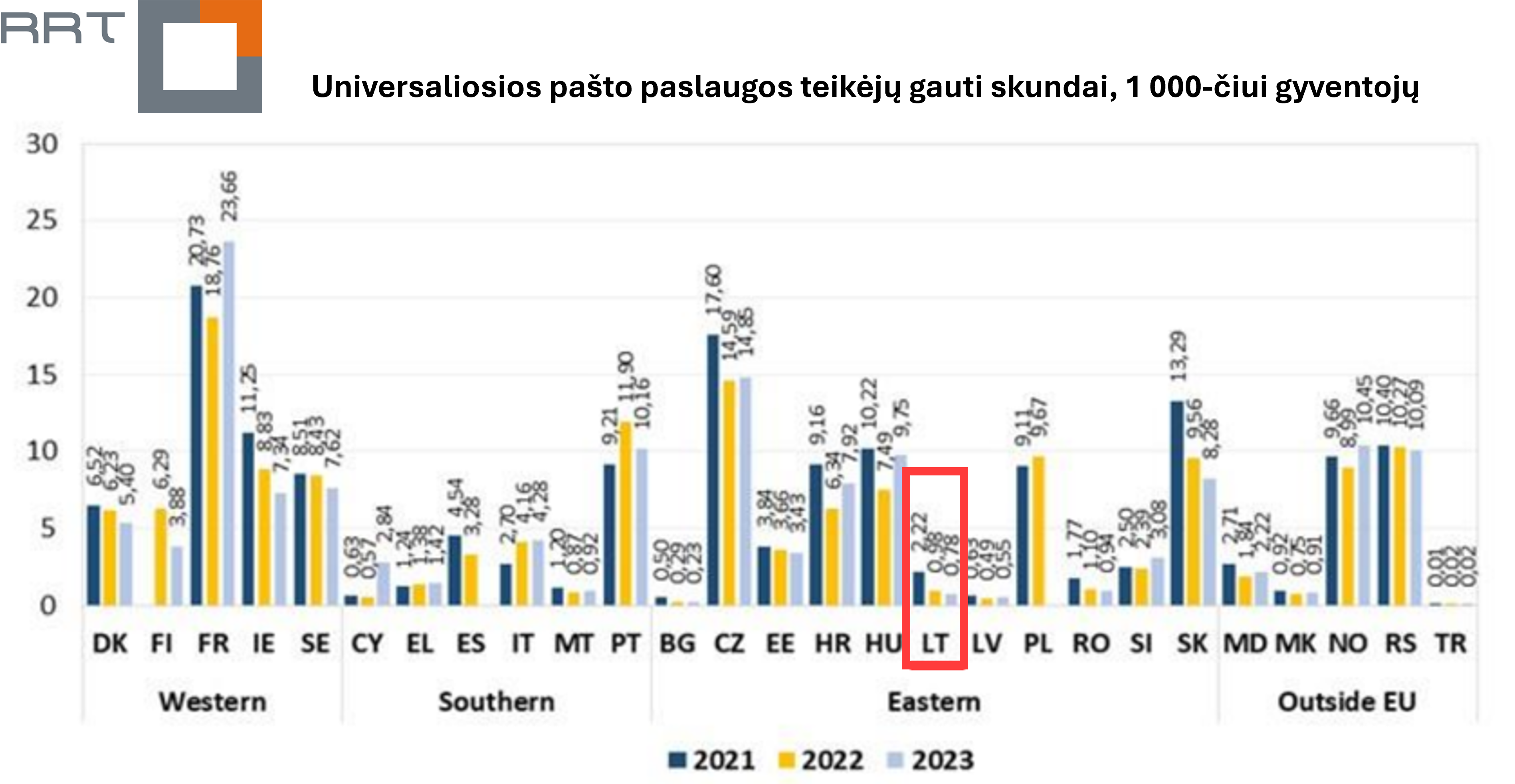 Europos pašto reguliuotojų grupės (angl. The European Regulators Group for Postal Services, ERGP) Vartotojų ir rinkos rodiklių darbo grupė paskelbė 2023 m. ataskaitą apie pašto paslaugų kokybę, vartotojų apsaugą ir skundų nagrinėjimą 32 Europos šalyse.